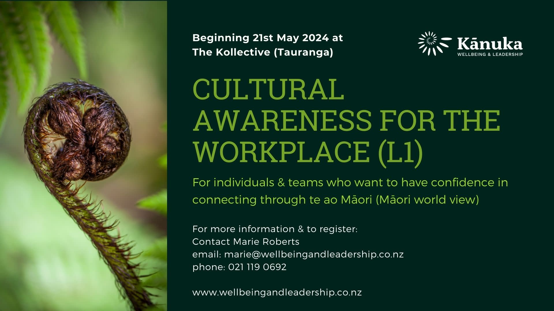 Contact Marie Roberts marie@wellbeingandleadership.co.nz or Ph: 021 119 0692